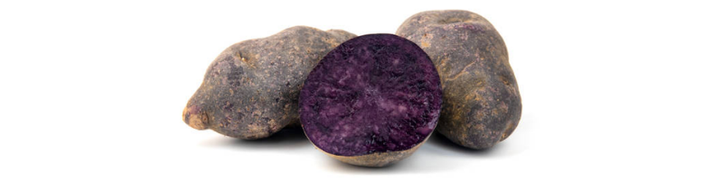 Batata Vitelette: É uma variedade de batata de cor azul violeta, que tem sido cultivada na França desde o início do século 19. Tem um sabor agradável e cheiro de castanha. A cor é mantida no cozimento devido aos pigmentos naturais da antocianina grupo de flavonóides. A batata Vitelotte é de cor púrpura escuro, são mais doces que as batatas comuns e apresentam um travo de noz. A batata Vitelotte é de cor púrpura escuro, quase preto. Tem forma oval e tamanho médio. Esta batata de polpa farinhenta é ideal tanto para puré, como para sopa. Tem a particularidade de absorver pouco a gordura, criando por isso boas e originais batatas fritas.