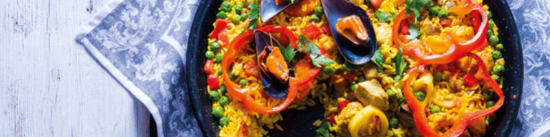 A paella mista é uma receita tipicamente espanhola feita com arroz, marisco, carne e legumes que cozinham num caldo rico de vegetais e açafrão. O resultado é um prato colorido e uma mistura perfeita de sabores.