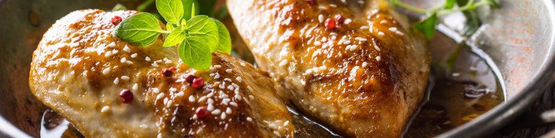 - Coloque os peitos de frango e deixe por 2 min até dourar de um lado. Vire e deixe dourar do outro lado. Retire da frigideira e reserve;