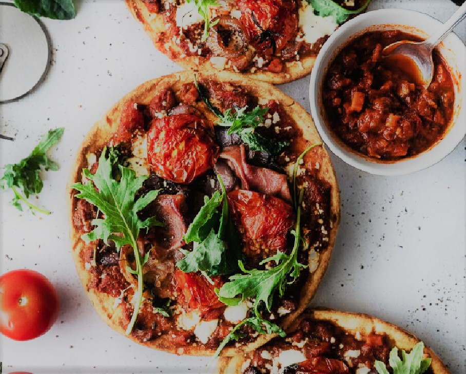 Utilizar Pão Naan para base de pizza é ótimo. Este pão simplifica o processo de confecionar pizza e não precisa de ir ao forno por um longo período até obter a consistência perfeita. O doce do tomate assado e do Vinagre Balsâmico é combinado com os restantes ingredientes vegetais e cria uma pizza fina e bem equilibrada. Para que saboreie esta receita na perfeição siga os nossos conselhos no método de preparação.