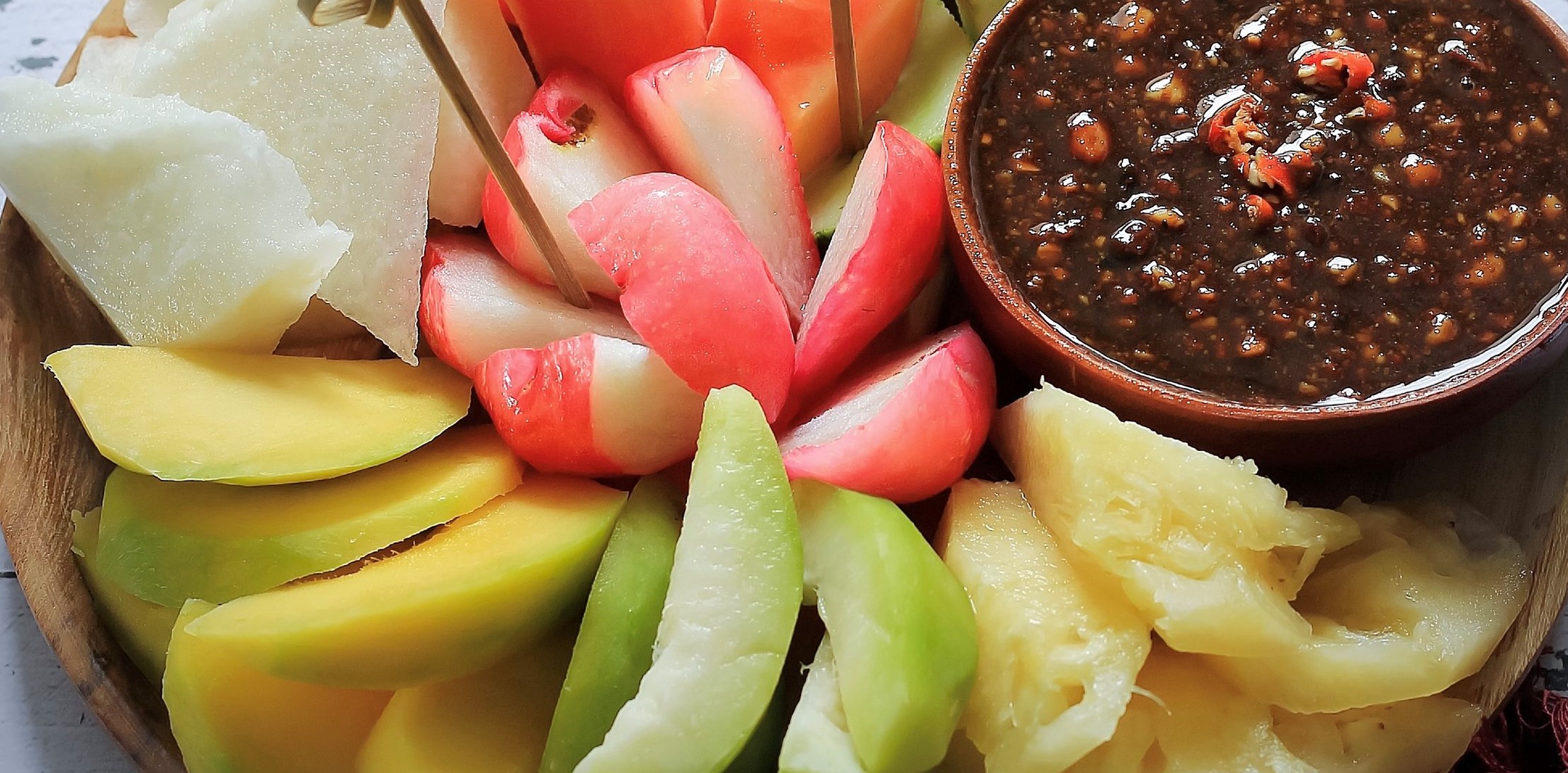 Os indonésios adoram tudo doce e picante, mesmo quando se trata de frutas. Não é de admirar que tenham inventado este molho Rujak para acompanhar as nossas frutas! Para um prato típico, escolha frutas tropicais.