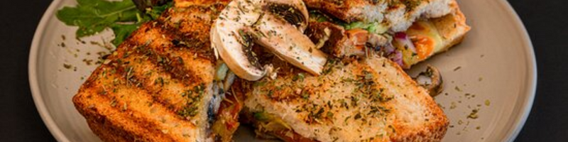 - Barre quatro fatias do pão com mousse de pato e distribua o salteado de cogumelos, pelas mesmas.