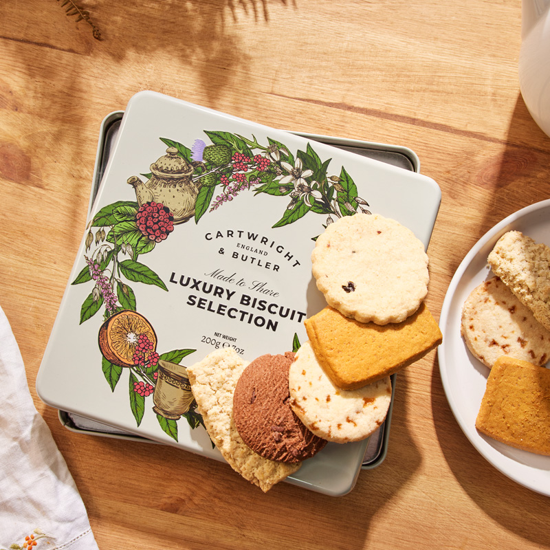 This is the perfect introduction to Cartwright & Butler exceptional biscuits, a collection of some of their most popular creations. And to make it even more special, it comes in its very own biscuit tin. This selection contains: Current Shrewsbury; Mild Ginger; Chocolate Orange Chunk; Oat Flip; Salted Caramel.