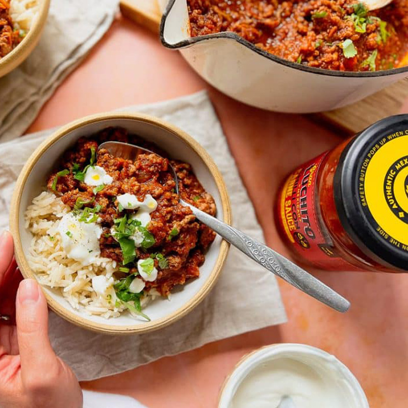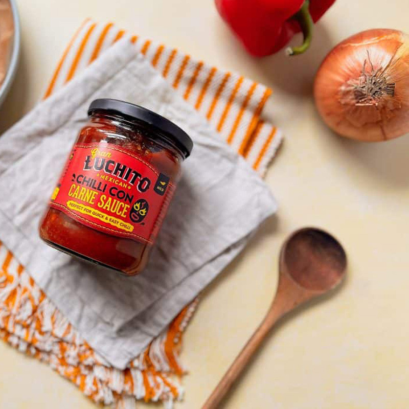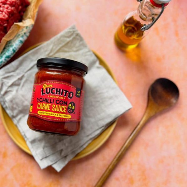 Gran Luchito’s new, fuss-free Chilli Con Carne Sauce! With this chilli sauce, you don’t have to follow long recipes to make a tasty chilli. It only takes a few minutes—just add ground beef for a quick and flavourful chilli.