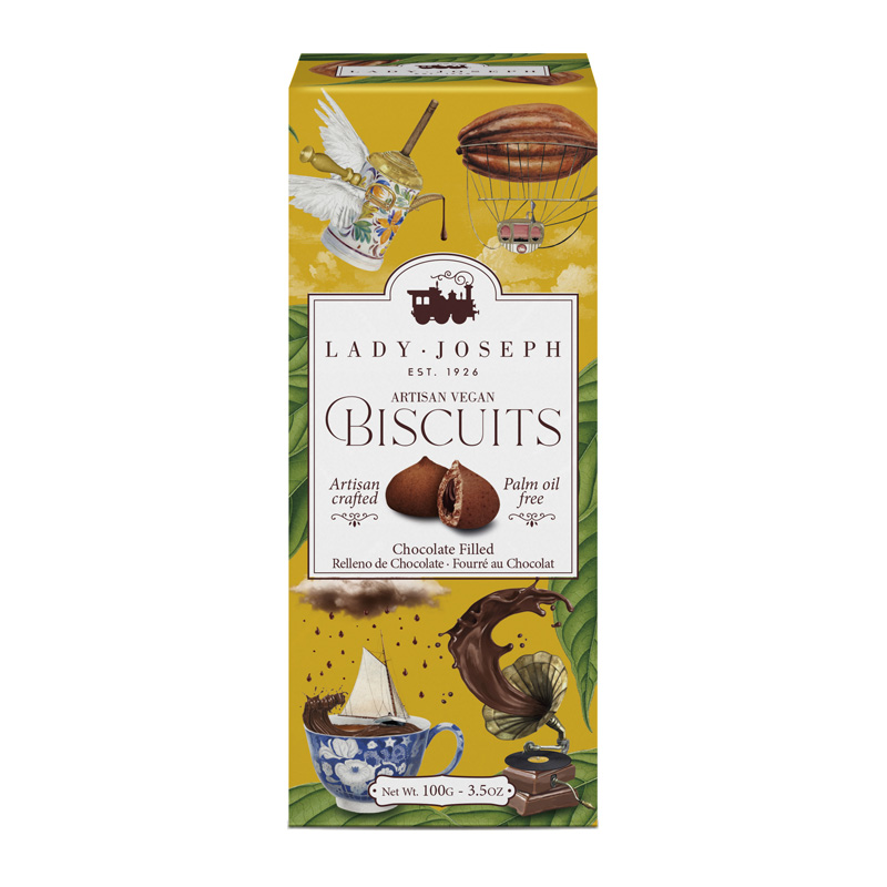 Cocoa biscuits filled with melted chocolate. Crispy on the outside, creamy and delicious on the inside. Ideal for snacking at any time of the day and perfect for snacks or breakfast. Natural, artisanal and without additives, preservatives or palm oil.