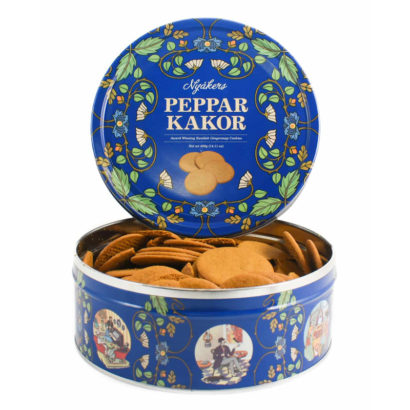 Thin, crispy biscuits prepared with a spicy blend of clove, cinnamon, and ginger and gathered in a beautifully patterned tin. They are considered the world’s finest (and thinnest) ginger cookies.