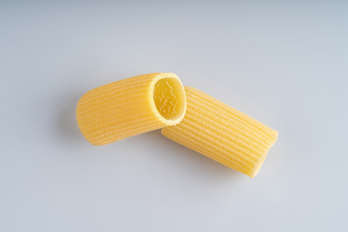 Rigatoni Pasta with its generous tubes and fluted surface, it is the perfect combination for ragus, rich sauces, and flavorful slow-cooked dishes. Expect a perfect al dente bite, every time. “Pasta di Gragnano IGP” is made with 100% Italian durum wheat semolina and water from the Lattari mountains, according to tradition.