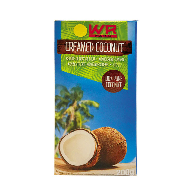 To make Coconut Cream: Break 200g Creamed Coconut into a bowl. Add approx. 450ml of warm water and stir until dissolved. Now strain this through muslin or a fine sieve to leave coconut cream, ready to use.