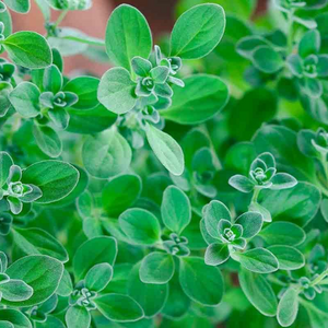 A manjerona (Origanum majorana, Lamiaceae) é uma erva ou planta duradoura (mas sensível ao frio), com sabores doces a pinho e citrino.