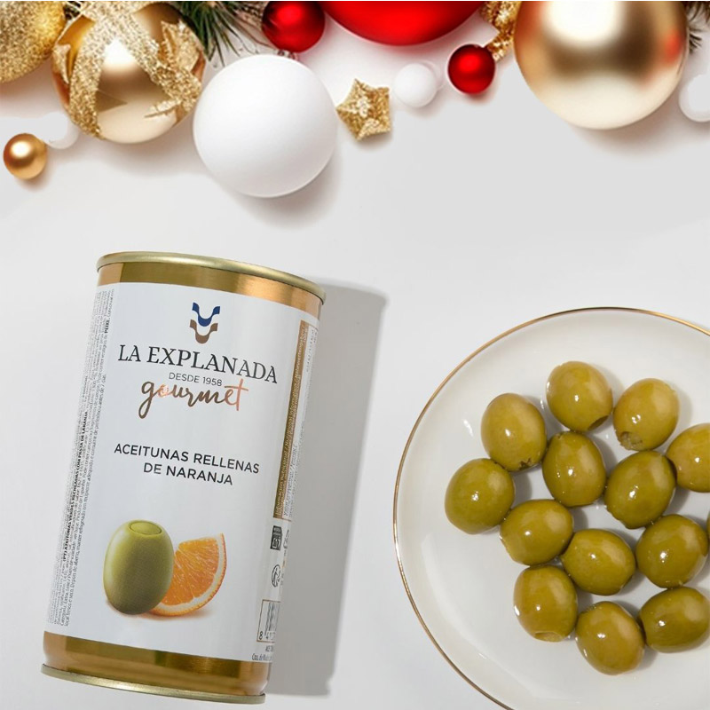 As azeitonas recheadas com laranja da La Explanada fundem de forma inovadora a suavidade da azeitona verde com a frescura cítrica da laranja. Criteriosamente selecionados para garantir uma textura firme e carnuda, aos quais se junta o recheio de laranja, proporcionando uma explosão de frescura e um aroma inconfundível. Cada dentada é um equilíbrio perfeito entre doçura, acidez e um toque de sal, criando uma experiência gastronómica única.