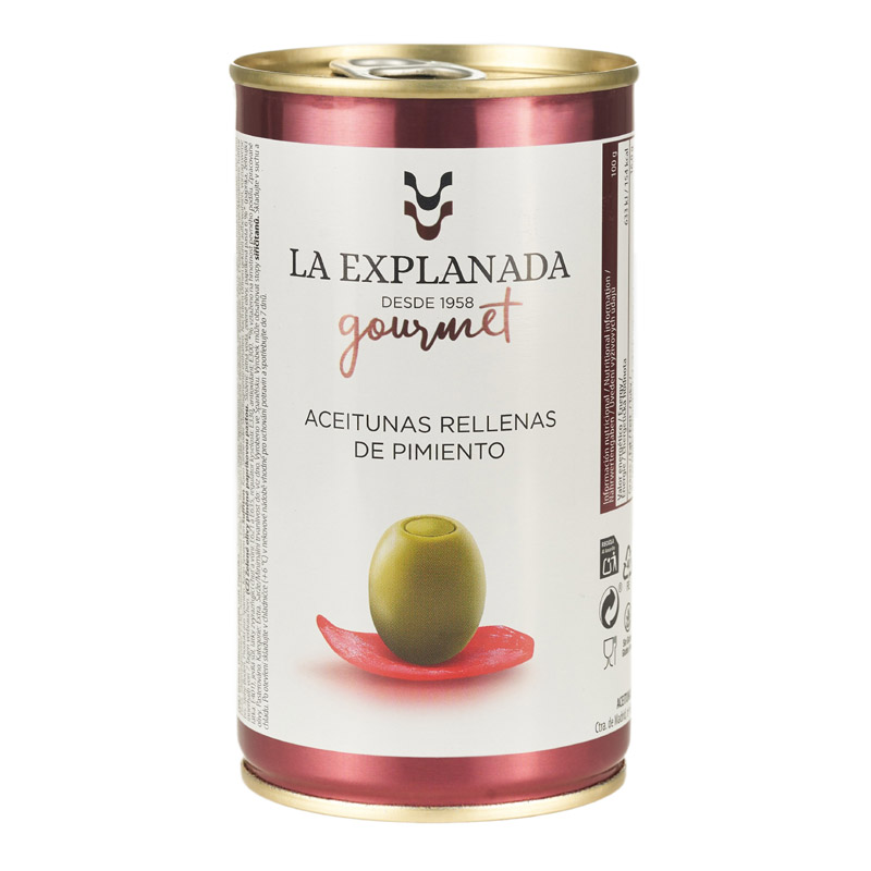 As azeitonas recheadas com pimentos da La Explanada são infalíveis num aperitivo gourmet tradicional. Recheados com uma requintada pasta de pimento vermelho, oferecem uma mistura muito saborosa que fará as delícias dos paladares mais exigentes. Cada dentada é uma explosão de sabor e textura.