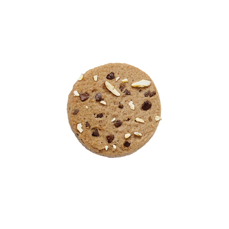 Farinha de TRIGO (GLÚTEN), óleos vegetais (azeite, girassol e coco), açúcar, chocolate preto (cacau, açúcar, manteiga de cacau, lecitina de girassol) (15%), AMÊNDOA (10%), sal.