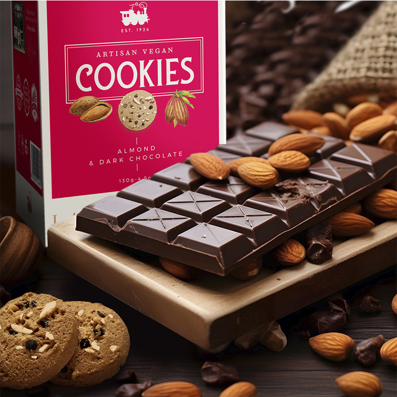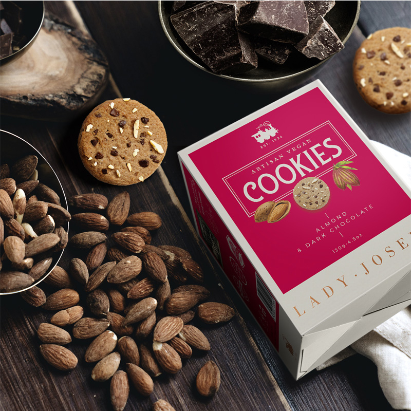 Deliciosos biscoitos com chocolate preto e amêndoas Marcona. Desde a primeira dentada deixe-se invadir pelo chocolate preto mais cremoso e intenso e pelas amêndoas crocantes. Vegano, natural e sem óleo de palma. Preparadas de forma artesanal com ingredientes de primeira qualidade.