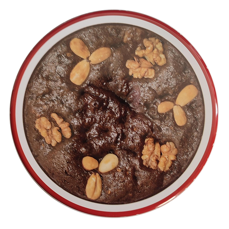 Farinha de TRIGO (Farinha de TRIGO, enzimas, agente de tratamento de farinha (E300)); mel de cana (28%), açúcar, margarina palma (óleo de palma refinado e antioxidante (E304i e E321)); gordura animal, sultanas, Bicarbonato de Sódio (E-500ii), Vinho Madeira, canela, erva doce, limão, laranja, noz moscada, aguardente, NOZES e AMÊNDOAS.