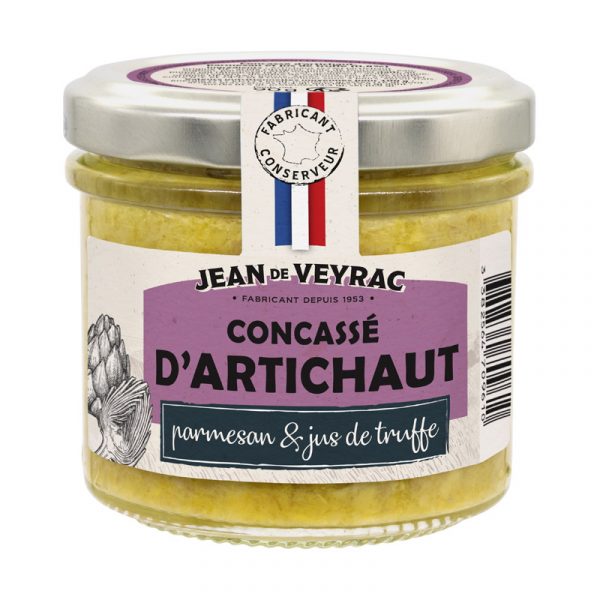 Alcachofra (57%) (alcachofra, ácido cítrico), óleo de girassol, água, cebola, parmesão DOP (6%) (LEITE), polpa de alho (alho rehidratado (91%), sal, acidulante: ácido cítrico, conservante: bissulfito de sódio), sal, sumo de trufa (0,8%), pimenta.