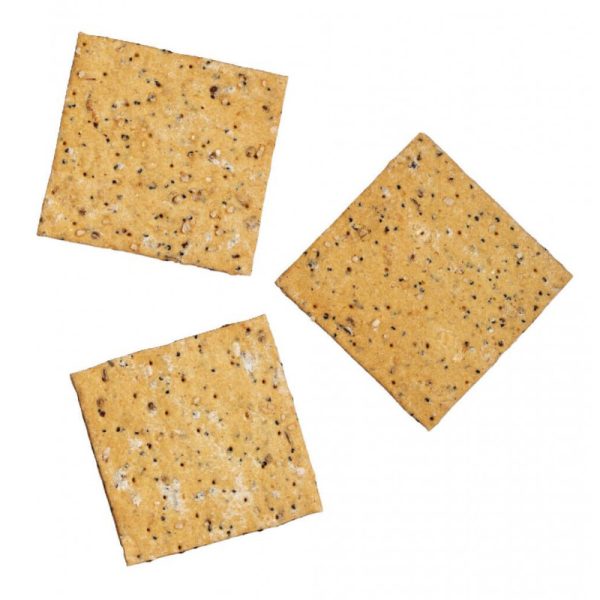 Estas crackers têm sabor delicado e subtil de sésamo, sementes de papoila, coentros e cominhos. Combinam bem com um vinho tinto forte ou com um rosé frutado.