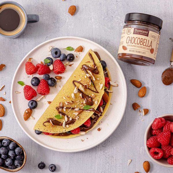 Um creme de cacau e avelã, de sabor intenso e com apenas mais alguns ingredientes: açúcar de cana, óleo de girassol e leite em pó desnatado. É o creme de cacau e chocolate para barrar perfeito para todos os deliciosos lanches, sozinho ou em receitas doces. O que torna este Chocobella Clássico um creme de avelã e cacau único é um toque de creme especial de amêndoa torrada que adiciona uma textura deliciosamente cremosa e um sabor inimitável.