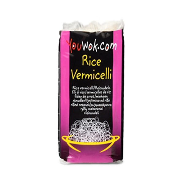 Bastante longos e finos, esta Massa de Arroz Vermicelli da YouWok é feita de farinha de arroz e água. É um tipo asiático de aletria e devem ser demolhados em água alguns minutos antes da sua utilização.