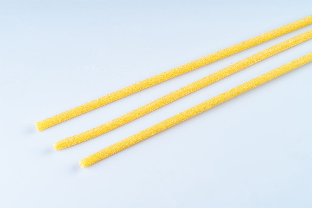 Um dos formatos mais populares na Campânia, o Ziti combina na perfeição com molhos intensos, que criam um excelente equilíbrio com a intensidade do sabor deste extraordinário formato de Pasta di Gragnano IGP, trefilada em bronze.