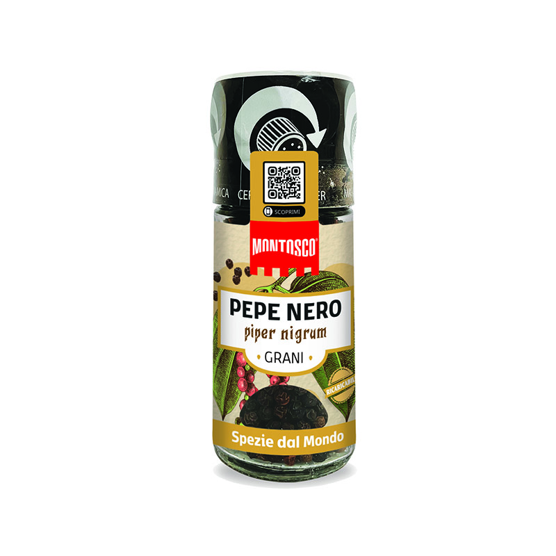 Este Moinho Cerâmico da Montosco contém pimenta preta de Tellicherry, com uma fragrância pungente e um sabor intenso e condimentado, é considerada por muitos uma das melhores pimentas do mundo. A pimenta é seca lentamente a baixa temperatura para preservar o seu sabor e aroma. Este Moinho de Pimenta Preta possui um mecanismo cerâmico muito durável e consistente na moagem. Pelo seu design, durabilidade, funcionalidade e apresentação é ideal para udo diário.