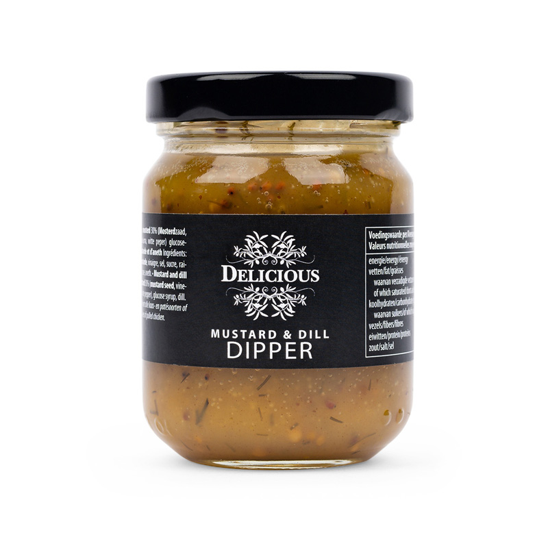 Açúcar, MOSTARDA (30%) (sementes de MOSTARDA, vinagre, sal, açúcar, rábano, curcuma, pimenta branca), xarope de glucose, endro (0,4)%.