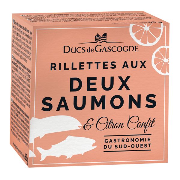 Rillettes de peixe, mas ao estilo de Jean Veyrac: uma mistura de salmão fresco e salmão fumado é a base, garantindo a intensidade de sabor e textura. O creme fresco complemente com a untuosidade e cremosidade. Junta-se o limão confitado que procura dar notas de frescura para uma mistura saborosa.