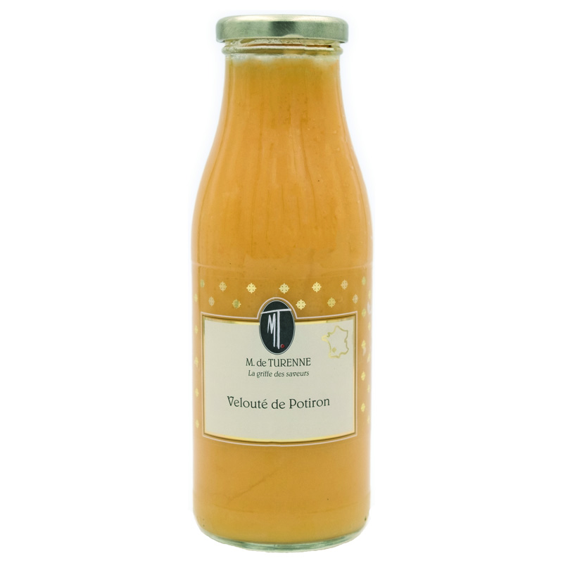 Descubra a sopa de abóbora da M. de Turenne, uma sopa reconfortante cozinhada com abóbora, o mais naturalmente possível com um toque de sal e azeite.