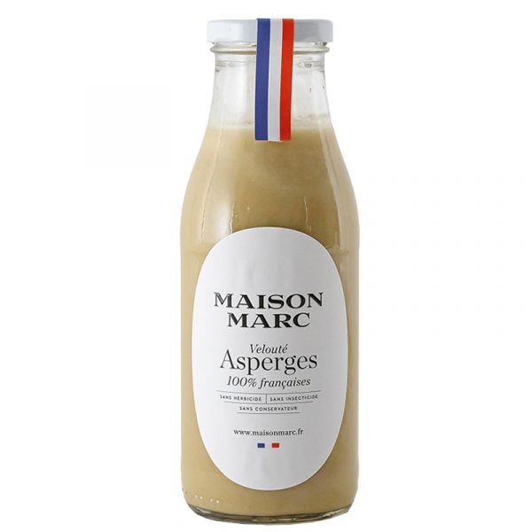 Descubra a sopa velouté de espargos da Maison Marc, uma sopa reconfortante cozinhada com espargos de agricultura sustentável, o mais naturalmente possível com um toque de natas e chalota.