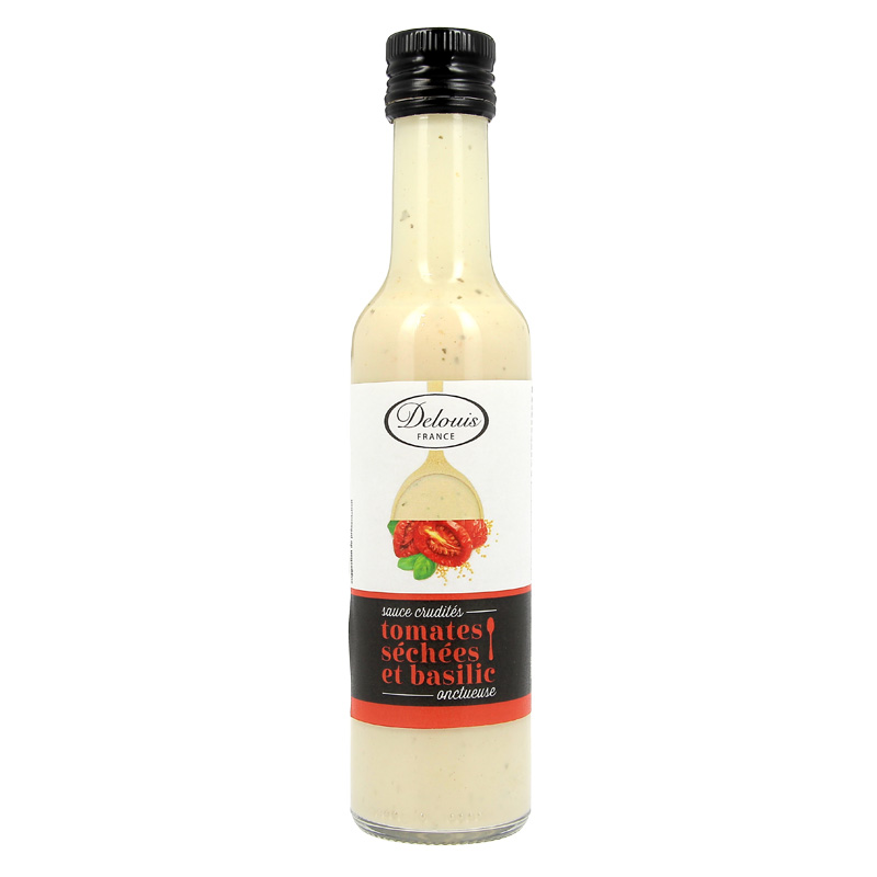 Água, óleo de girassol (30%), MOSTARDA Dijon (sementes de MOSTARDA, vinagre de álcool, água, sal), gema de OVO (4,5%), vinagre de vinho branco, açúcar, sal, sumo de limão concentrado, tomate seco (1%) (tomate, sal), manjericão (1%), vinagre de álcool, alho, amido de milho, espessante: goma xantana.